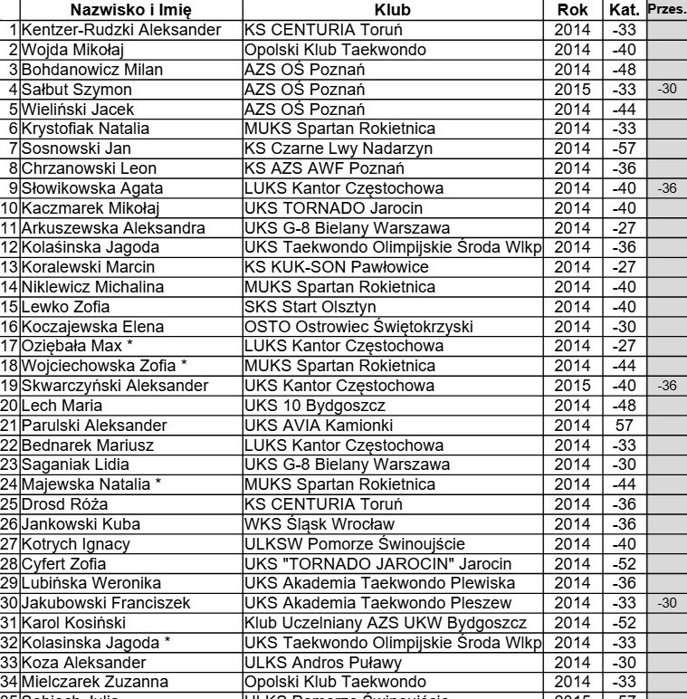 Jako ciekawostkę można podać ranking poomsae, w którym Tymek Chybiński jest 4 w juniorze, a Julka Masłowska razem z Natanem Kantorysińskim jest pierwsza w kadecie! Agata Dondalska widnieje na 12 miejscu w seniorze. Gratulacje, bo naprawdę dobrze robicie układy, przynajmniej jak na warunki polskie i jak na to, że głównie walczycie.